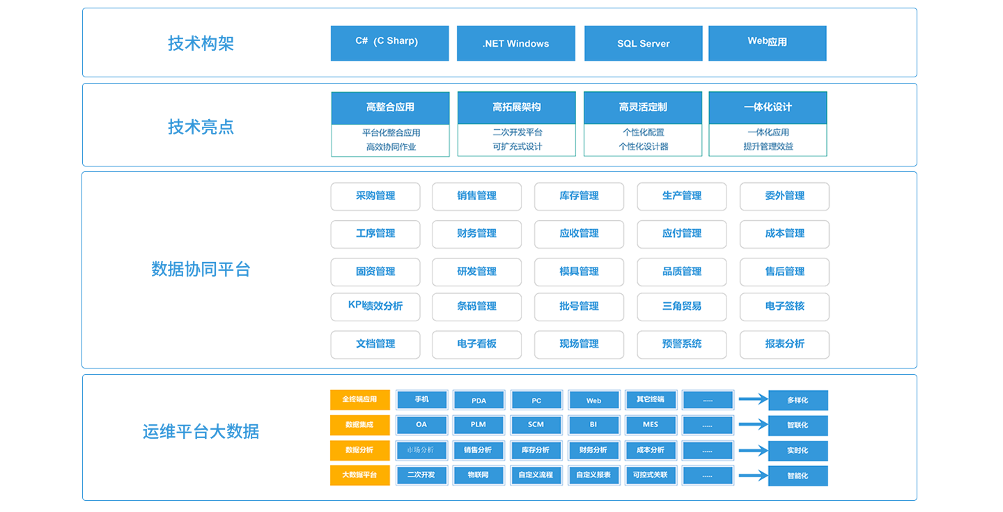 顺景开云球赛_开云球赛中国有限公司 ,以制造为核心,将制造企业核心的生产管理需求与供应链管理、财务管理相结合完美结合,打造以生产计划为核心的全程一体化管理体系,打破各部门、各环节、各系统之间沟通和协作的壁垒,建立规范、灵捷、高效的业务流程,实现销售、PMC、采购、仓库、品质、人资、财务、工程技术部门等所有环节全程无缝管理,确保了数据信息在传递过程中的准确性、时效性和有效性,帮助企业快速反应、紧密协作、良好运营,更快推进业务发展,全面提升核心竞争力